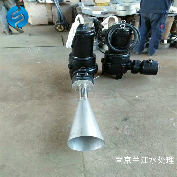 射流曝氣機的原理是通過潛水泵産生的水流經過噴嘴形成高速水👩🍼流,在噴嘴周圍形成負壓吸入空氣,經混合室與水流混合,在喇叭形的擴散管内産生水氣混合流,高速噴射而出,夾帶許多氣泡的水流在較大面積和深👿度的水域🛀🏼内渦旋攪拌,完成曝氣,并且其軸功率不随潛沒深度的👱🏼♂️變化而變化,可以調節進氣量。