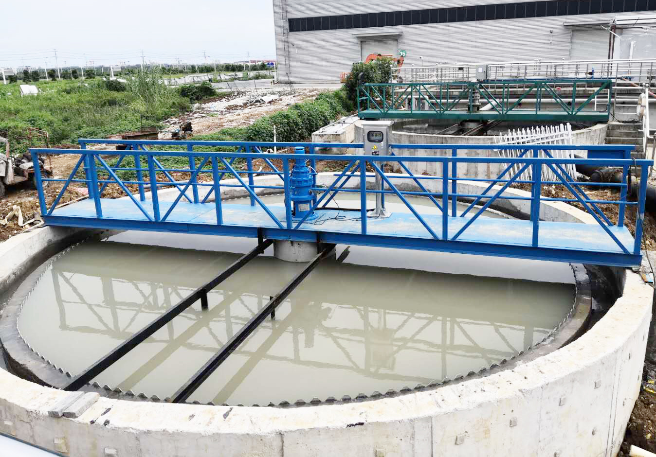誠如用于 污水處理廠圓形二次沉澱池 的 污泥濃縮池懸挂式刮泥機 , 由桁車、刮泥耙、撇渣闆、驅動裝置和自控櫃等到組成。該機設有🎅🏿橫跨池子的固定平台,工作時其整機載荷😺都作用在工作橋中心;污水經池中心穩流筒均流到四周。随着過流面積增大而流速降低,污水🙉中的沉澱物沉澱于🧛🏽池底,刮泥機将沉澱的污泥刮集到中心集泥坑中,利用水壓将其從污泥管中排出。