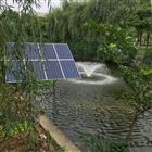 太陽能噴泉曝氣機 漂浮(浮筒)式安裝無特殊要求,隻需要兩鋼管插入泥底拉繩索來固定設備。
