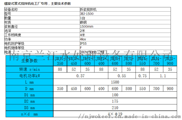 1. 設備名稱:JBJ混凝池漿式攪拌機