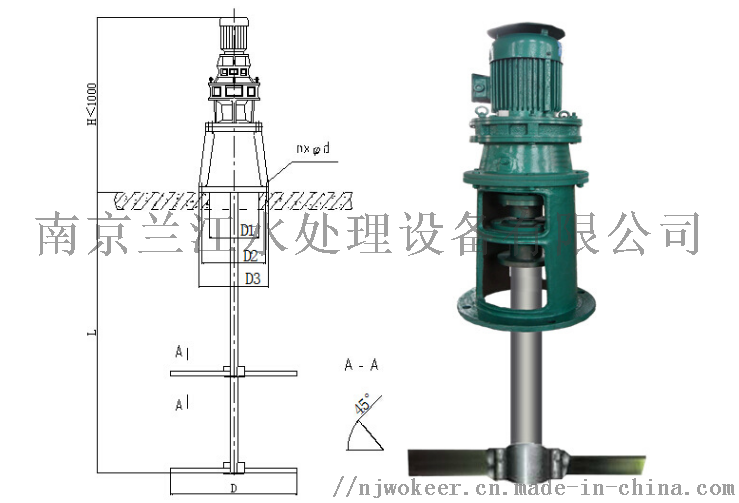 攪拌機水下部件(軸及槳葉)采用碳鋼材質并做防腐處理。