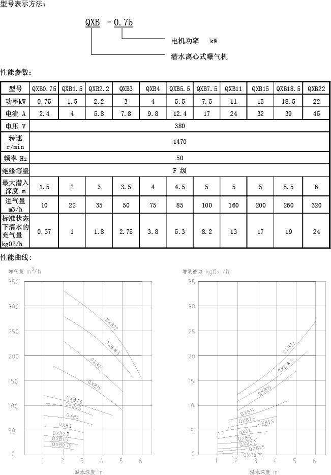 QXB 型離心式潛水曝氣機用于污水處理廠曝氣池、曝氣沉砂池,對污水污泥的混合液進行充氧及混合,以及對污水進行生化處理或養殖塘增氧。