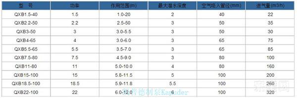 三,潛水離心曝氣機性能參數:
