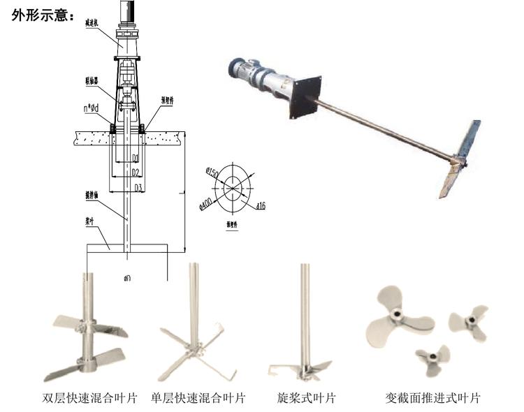 攪拌杆和攪拌漿葉有不鏽鋼、碳鋼防腐和塑料等多種材質;