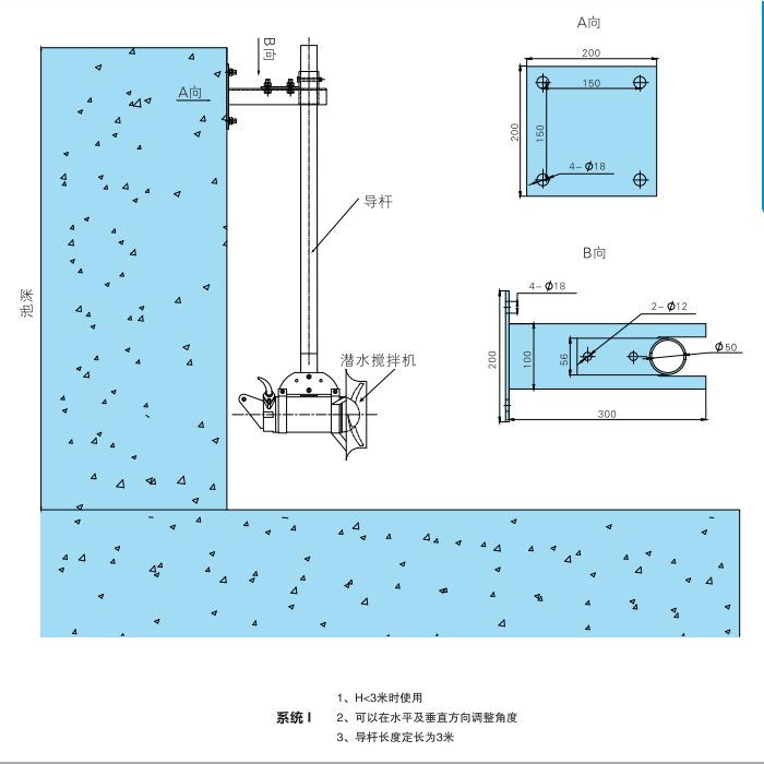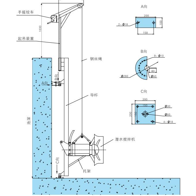 4、導杆與支撐架應與池底預埋件焊接牢固。