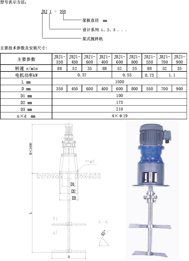 漿式攪拌機是目前、理想的機型,具有自動化程度高ˇ、攪拌質量好、效率高、能耗低、噪音小、操作方便、葉片使用壽命長,維修保養方便等優點 JBJ加藥漿式攪拌機價格